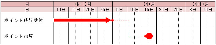 1日から末日までのお申込み分は、申込月の翌月中旬ごろにポイントが移行されます。