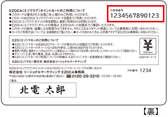 EZOCAにポイントを移行する場合、カード裏面に記載されているお客様番号が必要になります。